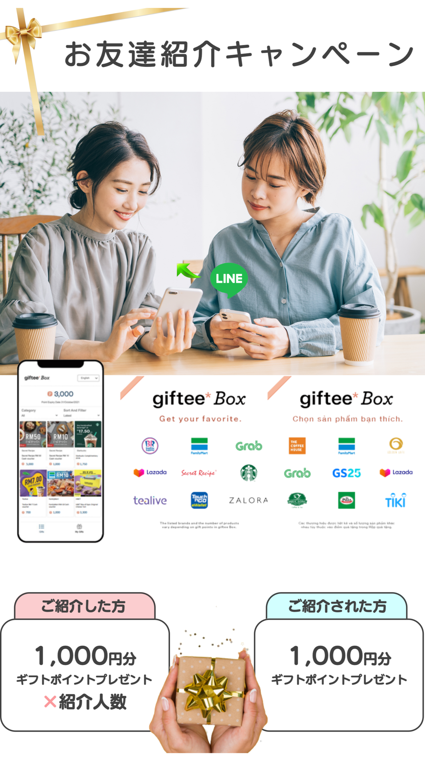 ご紹介者様に「1000円分」のギフトをプレゼントさせていただきます。